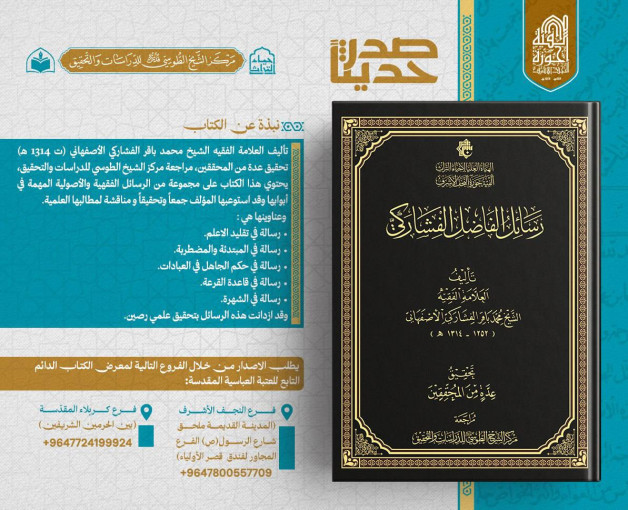 صدر حديثاً عن مركز الشيخ الطوسي للدراسات والتحقيق التابع للهيأة العليا لإحياء التراث: